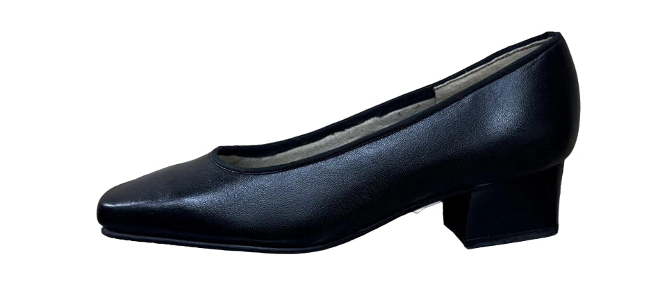 Mod Comfys L174 Ladies Black Leather Mid Heel Plain Office/ Airport/ AirLine/ Work Court Shoes (Copy)