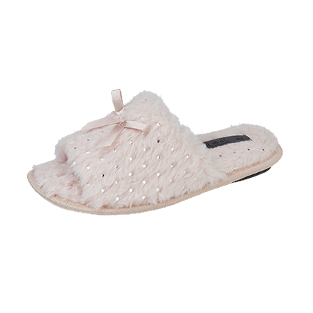 Jo & Joe Glitzy Ladies Velour Mule Slippers With Cute Bow Pink