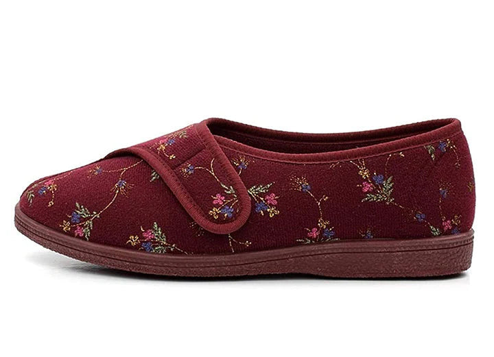 Comfylux LS467 Helen Womens SUPER WIDE FIT Wine Red Floral Open Out Washable Slippers