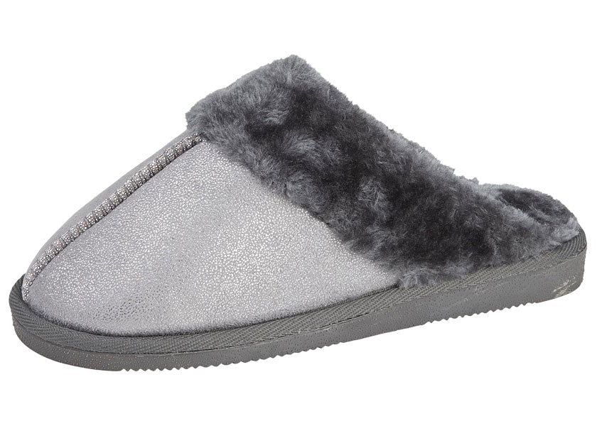Sleepers Juliet LS859 Womens Light Grey/Silver Soft Fluffy Warm Faux Fur Mule Slippers