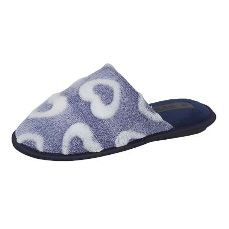 JO & JOE CHERUB LADIES NAVY VELOUR HEART DESIGN WARM FAUX FUR LINED MULE SLIPPERS