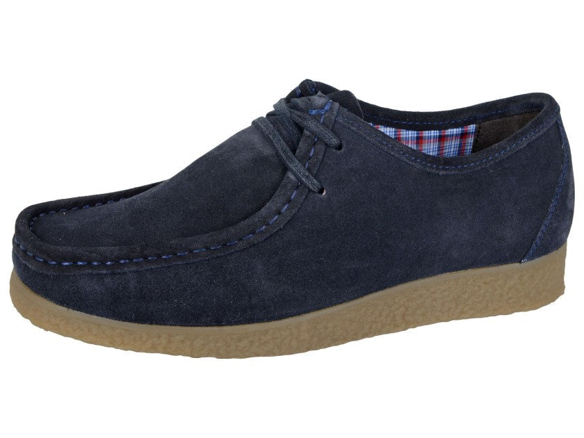 Roamers M954 Trapper Mens Navy Suede Wallabee Style Casual Lace Up Shoes With Contrast Rubber Soles