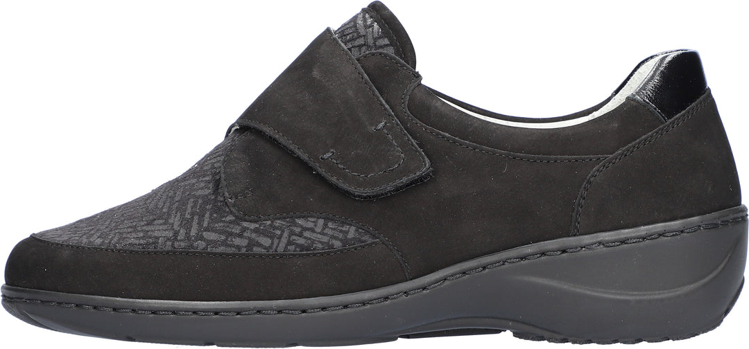 Waldlaufer Kya Wide Fitting Black Nubuck Suede/ Stretch Orthoritt Walking Shoes With Velcro Fastening And Removable Insoles (Copy)