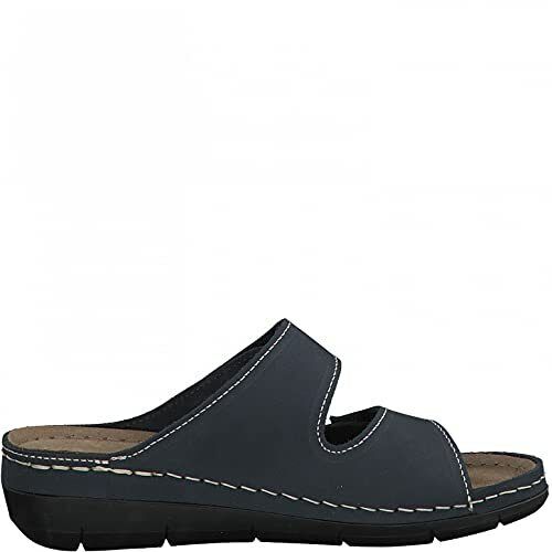 Tamaris 27510 Ladies Navy Nubuck Leather Double Touch Fasten Wide Fit Mule Sandals
